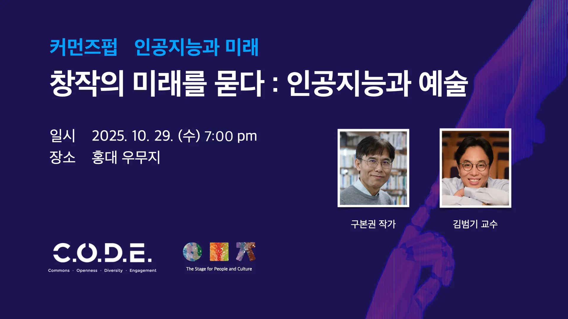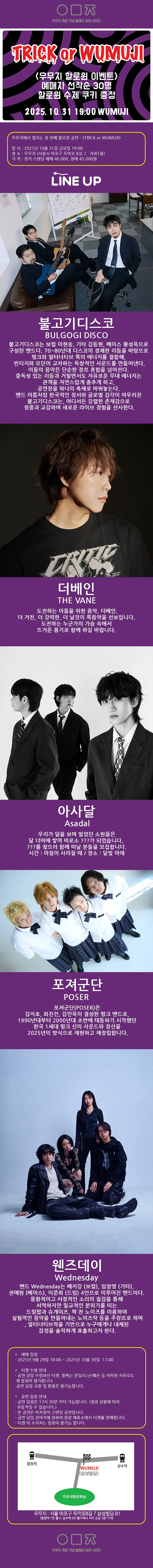 공연장 우무지는 비영리 단체인 사단법인 코드가 운영하는 복합 문화공간입니다. 아티스트와 팬들이 함께 만들어가는 자생적인 공간으로서, 다양한 장르의 아티스트들이 팬들과 만나며 성장할 수 있는 소중한 무대를 지켜나가겠습니다. 우무지의 주인공은 아티스트, 관객 그리고 우리 모두입니다.